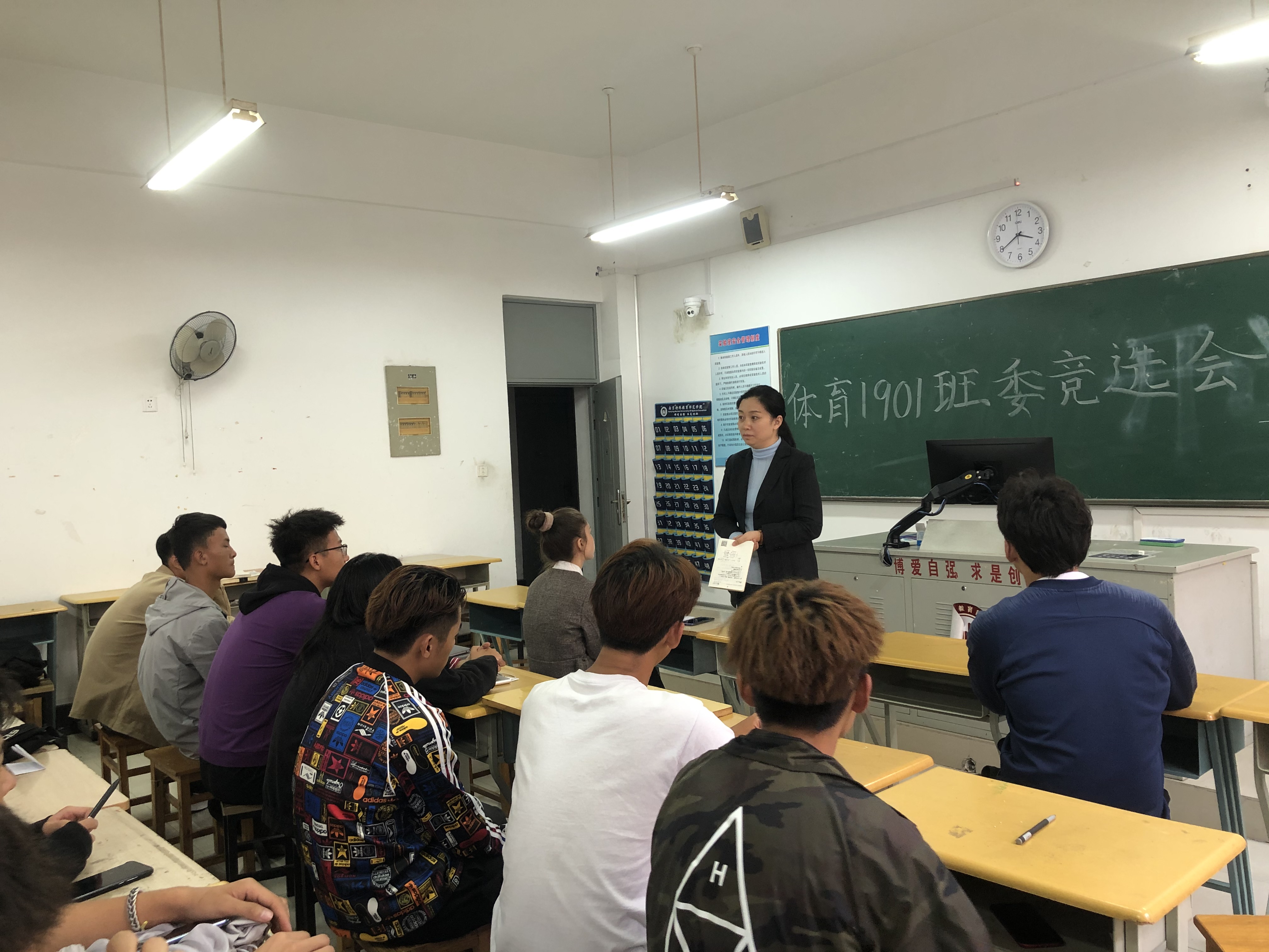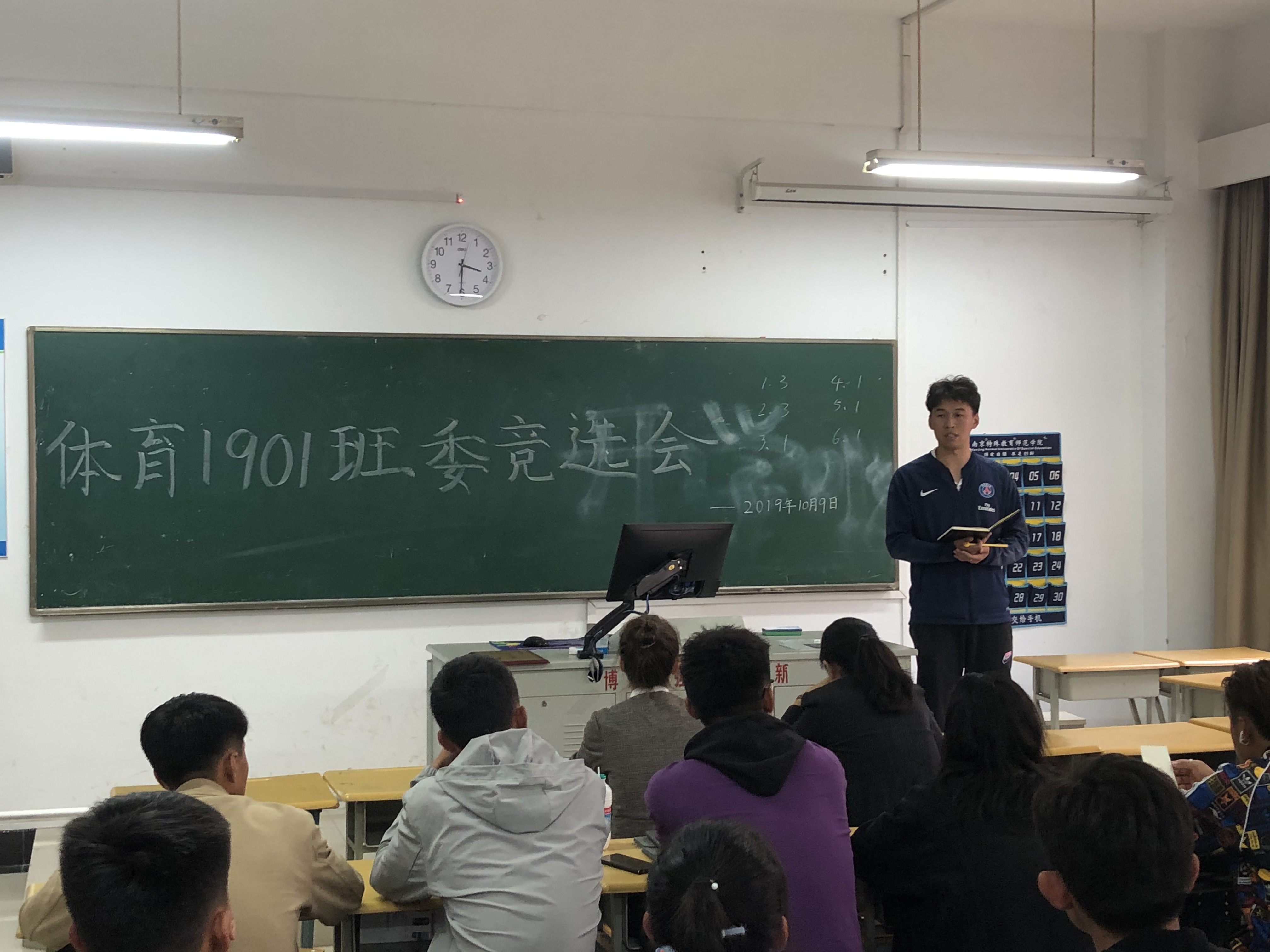 “火车跑的快,全靠头来带” ,为了养成良好的班风与学风,天游8线路官网天游ty8线路1线路2检测中心1901班,召开了班委竞选会。2019109日下午3点,天游8线路检测中心体育1901班召开了以“竞选班委”为主题的班会。参加本次班会的有:天游ty8线路1线路2检测中心书记吴书记、体育班班主任杜老师、体育班辅导员努尔老师、体育部助理顾助理以及本班18名同学。