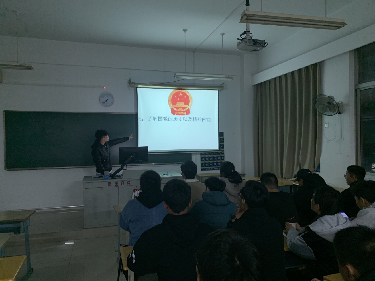 11月19日晚,天游ty8线路1线路2检测中心1901班博雅楼召开了以《我与祖国共进退》为主题的团日活动。团支部书记包涵硕同学通过短片、视频向大家展示了中华人民共和国国旗、国徽的图案以及他们背后的故事。大家一起聆听了雄壮的中华人民共和国国歌,歌声把我们带到了那个艰苦卓绝、硝烟弥漫的革命年代。接着,大家积极参与了主题讨论,“我为祖国做什么?”“青年人的使命和担当是什么?”