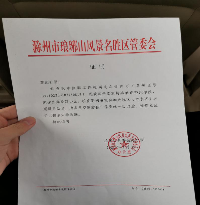 许可,男,安徽省滁州市人,天游ty8线路1线路2检测中心体育教育专业1901班学生。2月10日经社区宣传报名花园社区志愿者。在他工作期间,每天早上在小区唯一的出口处为来往的人员测量体温、检查出入证明。到了临近晚上,又转反于社区里的不同小区内做宣传、发传单,在工作中遇到不戴口罩或不配合的人员也会细心引导和宣传。落实每一项工作的实施,并主动响应社区加班加点工作要求。在后期,大部分志愿者都返工的情况下独自完成了社区的很多工作,并且主动承担了后期的夜班工作。他说:“疫情无情,人有情。利用我的空闲时间助力抗疫工作,不仅仅帮助了别人也升华了自己,再小的力量也是一种支持。”