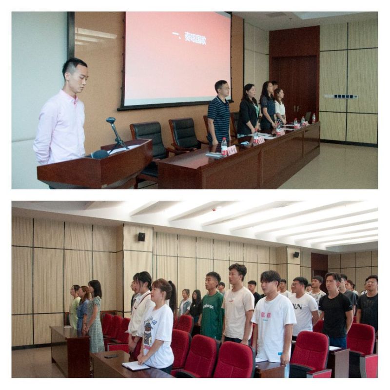 下午3点,全体起立,奏唱国歌,新生见面会在庄严的国歌声中开始。