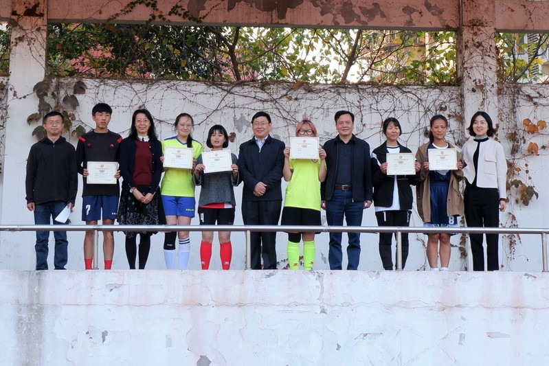 本次比赛是为了落实教育部等6部门《关于加快发展青少年校园足球的实施意见》和《全国青少年校园足球教学训练竞赛体系建设方案(试行)》有关文件精神,由校团委和天游ty8线路1线路2检测中心共同举办的全校性传统女子足球竞赛活动,吸引力来自全校8个院系500多位运动员、裁判员、志愿者积极参与。经过为期十多天的角逐,上届比赛的冠亚军语言学院和康复学院会师决赛,最终康复科学学院以一球险胜,捧得本次比赛的冠军奖杯,语言学院荣获亚军。美术与设计学院和音乐与舞蹈学院分列第三、四名。教育科学学院、管理学院获得“最佳组织奖”,特殊教育学院、数学与信息科学学院获得“体育道德风尚奖运动队”称号。来自特殊教育学院的扎西平措同学荣获“最佳裁判员”称号;美术与设计学院严未希同学荣获“最佳守门员”;语言学院覃燕梅同学、康复学院翁佳妮同学与美术与设计学院张星星同学均打进四球并列“最佳射手”;康复科学学院苏翌晨同学荣获“最有价值球员”。