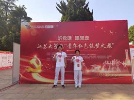 本次活动有两天,第一天的活动分别在雨花台烈士陵园和南京邮电大学举行。活动刚开始,同学们在雨花台烈士就义像前聆听了江苏省领导的殷切寄语,随后通过参观本次大赛其他参赛项目的展板的版面内容分配、项目内容的成果以及创新点,同学们都受到了很大的启发,并表示,体育类的创新项目很少,体育和特殊教育相结合的项目更少,他们将励志坚定不移的将本项目做好做大,让更多的特殊儿童受益。