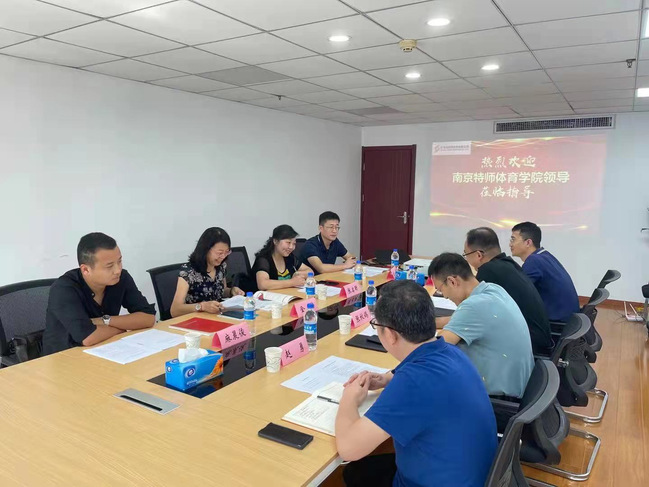 天游ty8线路1线路2检测中心直属党支部书记张启昕,副院长金梅、仝伟,麻晨俊博士,与江苏省体育竞赛有限公司董事长都永刚、副总经理张秋鸽、管理部部长赵勇、事业二部部长钱黄文参加了本次会议。
