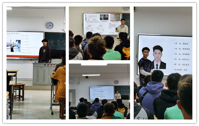会上,体育1901班包涵硕回顾了两年来自身在思想、学习、任职和实践方面的表现,并寄语新生树立明确的目标、努力学习专业知识和社会文化知识、提升职业道德素养和完善自身人格。1901班许可围绕两年来在学习、专业实践、创新创业、志愿服务等方面的经历,娓娓道来,并强调请给梦想一个机会的重要性。他指出两年来,他每天在图书馆、博雅楼、操场来回奔波,用行动成就不一样的自己。2001班温凯璇以“励志勉学,致知穷理;创新进取,知行合一;工作担责,全心全意;内外兼修,全面发展”为主题,简要介绍了自身在党史学习、创新创业、学生干部、社会实践等方面的表现。2001班夏韩宇洁围绕“学、创、担、扩”四字展开,强调了学好每一门课程的重要性。