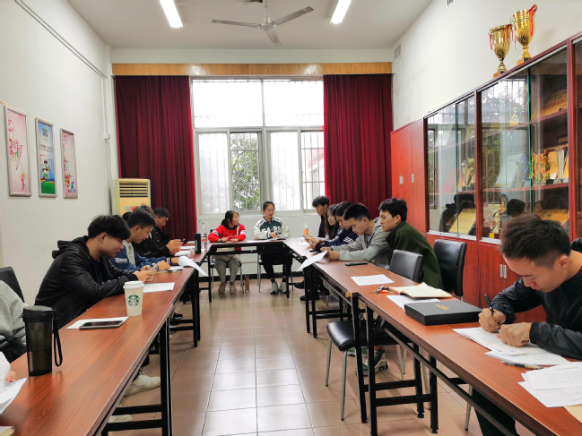首先屈老师就本学期团学工作计划与经费预算进行了全面梳理,并对学生会成员提出了五点期望与建议:一是有准备;“凡是预则立,不预则废”“机会总是赋予有准备的头脑”,参与每次会议或活动,做好充足的准备,包含熟知会议或活动要求、理清会议或活动思路等,是首要元素。二是有策划;任何活动,特别是体育赛事的举办,不能停留于“头脑风暴”,更需要第一时间形成策划方案。三是有交流;学生会全体干部应加强交流,不仅仅局限于部门内部的交流,更应当走出去,学习其他二级学院的先进经验与做法,扬长避短,取长补短。四是有规范;接下来,制定学院学生会系列制度是当务之急,包括各部门职责与分工、学生会例会制度等。五是有执行力;期望全体干部起于行,砺于行,止于行各部门加强协作,结合学院特点、学生特点,促进各项工作计划尽快落地生根。