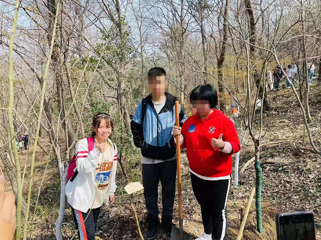大家一路欣赏春天的风景,一路来到种植点。植树过程中,大家互相配合,有的挥锹铲土,有的扶树填土,有的培土浇水,每个人都忙得不亦乐乎。看着一颗颗小树苗在大家的齐心协力下牢牢地被种在土壤里,看着乐平方孩子们脸上欢乐的笑容,体院的学生志愿者们都在感叹这次旅程的意义。