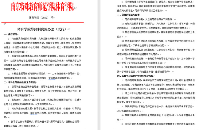前期,学院党政组织调研讨论,制定了《天游ty8线路1线路2检测中心导师制实施办法(试行)》,细化本科生导师的主要工作职责、导师遴选与配置、导师制的管理与考核等内容,为导师制的运行提供制度支撑。设立《本科生导师制工作手册》,记录好导师指导学生的全过程,作为考核依据。