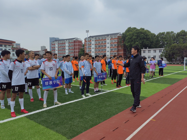 此次比赛,来自全校的特殊教育学院足球队、教育科学学院足球队、康复科学学院足球队、语言学院足球队、美术与设计学院足球队、音乐与舞蹈学院足球队、数学与信息科学学院足球队、管理学院足球队和天游ty8线路1线路2检测中心足球队的共120余名运动员参赛,比赛根据抽签结果分A、B两组先进行小组循环赛,随后进行交叉淘汰赛。