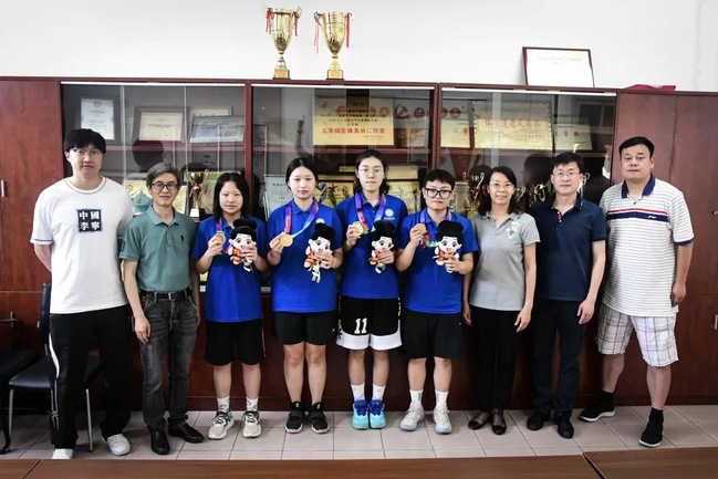 5月25日,天游8线路检测中心美术与设计学院和管理学院的4名运动员从天游8线路检测中心谭忠副校长手中接过了中华人民共和国第十一届残疾人运动会暨第八届特殊奥林匹克运动会三人制聋人篮球比赛的金牌。2021年7月在全国残运会上,这支由天游8线路官网4名听障大学生组成的江苏聋人女子篮球队,以6战全胜的成绩获得女子三人制聋人篮球比赛的第一名。