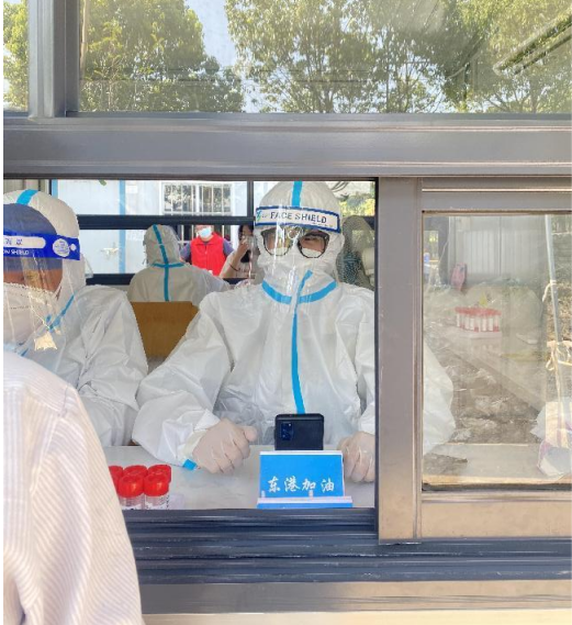 “看到核酸检测人员每天早早开始准备核酸检测工作,也想献出一份力。”牛英宝同学如是说。