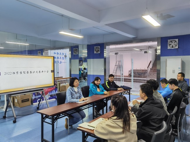 针对细则的颁布,1010日天游ty8线路1线路2检测中心召开了开训会。天游ty8线路1线路2检测中心直属党支部书记张启昕、副院长金梅(主持工作)、仝伟、体育教育系主任麻晨俊、三位参赛同学,以及全体指导教师参加了此次会议,会议由体育教育系主任麻晨俊主持。