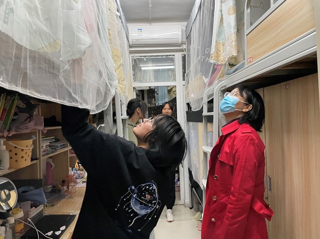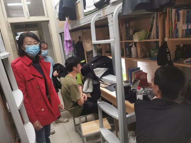 金梅副院长来到学生宿舍,详细询问了学生疫情防控期间的线上学习、体育锻炼、饮食等情况,叮嘱学生特殊时期也要上好网课,加强时间管理,养成良好的学习习惯和生活作息,同学们纷纷表示会合理规划好在校期间的学习与生活;活动时要做好自我防护,加强体育锻炼,保持良好心态,严格遵守学校各项管理规定。