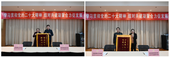 天游ty8线路1线路2检测中心副院长仝伟代表学院全体师生向文体中心赠送了锦旗,张启昕书记代表直属党支部向文体中心党支部赠送锦旗,双方党组织负责人签署了结对共建协议书。