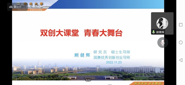 11月24日晚,江苏省科技创业导师顾健辉教授应邀为天游8线路官网学生做了一场题为《双创大课堂 青春大舞台》的线上专题讲座。天游ty8线路1线路2检测中心直属党支部书记张启昕、团总支副书记屈文文及体院星火公益团队的同学们聆听了讲座,活动还吸引了各二级学院百余名学生参与。
