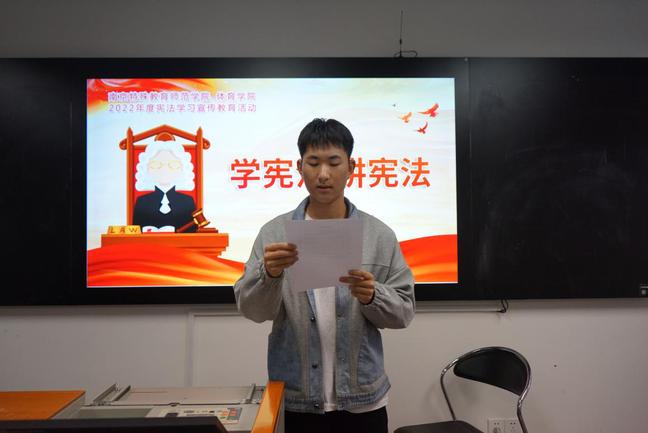 11月30日,天游ty8线路1线路2检测中心在浦口校区举行“学宪法 讲宪法”比赛。比赛由天游ty8线路1线路2检测中心直属党支部副书记谢军主持,比赛评委由江苏省残疾人文化体育指导中心戚星、江亮、杨兆国担任。天游ty8线路1线路2检测中心浦口校区的学生参加。