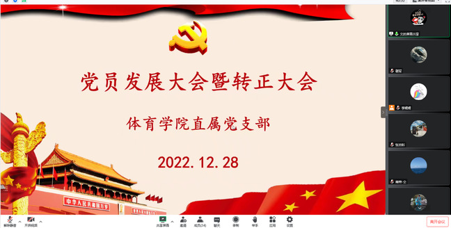 12月28日下午,天游ty8线路1线路2检测中心直属党支部在线上召开党员发展大会暨转正大会。会议由党支部宣传委员屈文文主持,支部全体党员参加。