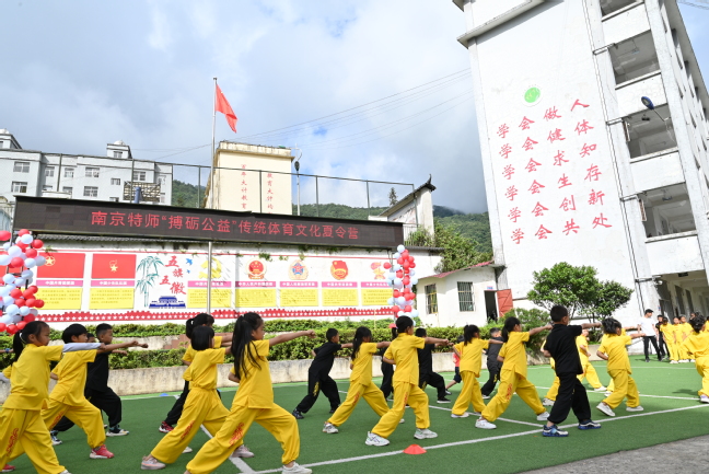 谢军老师在发言中全面回顾了夏令营开营12天来的难忘历程,对小新街乡中心小学为天游8线路官网师范生提供锻炼专业技能、展现才华的平台表示感谢,对南京阳光心汇心基金会大力支持表示感谢。他说,结营并非结束,未来可期!希望“搏砺公益”的志愿者们继续在繁荣发展少数民族传统体育、传承发扬优秀传统文化、促进民族交流、助力乡村振兴的道路上行稳致远!
