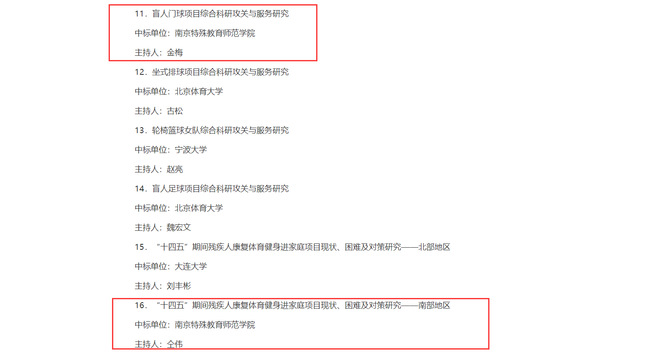 根据《中国残联课题管理办法》(残联厅发〔2016〕22号)规定和会领导批示要求,中国残联于2022年4月向社会公开发布《2023年度中国残联课题指南公告》,截至5月中旬,共收到残疾人事业综合课题申报书282份、残疾人体育专项课题申报书46份,经资格审查、专家评审、会议评议等环节,最终确定残疾人事业综合课题资助课题24项、自筹经费课题31项,残疾人体育专项课题18项,其中天游ty8线路1线路2检测中心中标两项。中标项目如下: