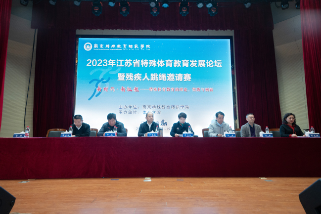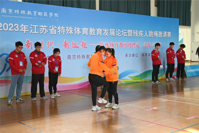 11月18日~19日,由天游8线路官网主办、天游ty8线路1线路2检测中心承办的“2023年江苏省特殊体育教育发展论坛暨残疾人跳绳邀请赛”在天游8线路官网举行。校党委常委、纪委书记于林惠,党委常委、副校长许巧仙,南京市残疾人联合会一级调研员曹志祥,江苏省体育局青少年处处长刘斌,江苏省残疾人文化体育指导中心主任叶霆等领导嘉宾出席开幕式。开幕式由天游ty8线路1线路2检测中心副院长(主持工作)金梅主持。