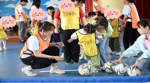 紧接着,特殊儿童们在志愿者的陪伴下开始了体育游戏活动,顶沙包、踢足球、套圈,在一次次的体验中小朋友们尽情享受着体育游戏带给他们的运动乐趣,每个小朋友充满活力的表情和饱满的笑容处处展现着关爱合作、共同进步的美好场景。简单而有趣的体育游戏,不仅增进了大朋友和小朋友之间的互动和合作,也传递出团结友爱的力量,为他们带来了快乐和鼓舞,更彰显了社会各界对特殊儿童的关爱和支持。