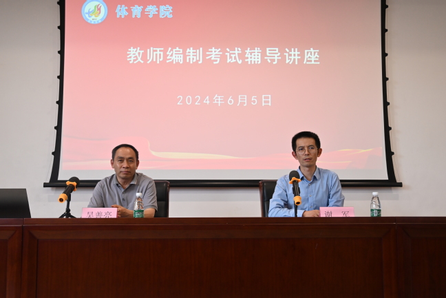 6月5日下午,天游ty8线路1线路2检测中心特邀镇江市特教中心书记、校长吴善亮,为体育教育专业师范生做了一场题为《做一名学生喜爱的优秀特殊教育老师—应聘特殊学校教师的一般方法与技巧》的教师编制考试辅导讲座。学院副书记谢军、学工办主任屈文文及体育教育音乐与舞蹈学院、美术与设计学院学生参加。讲座由谢军副书记主持。