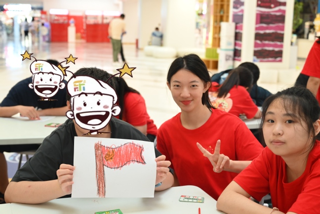 正值中国共产党建党日,“慧康·益心”暑期实践团组织开展了“童心绘彩旗,红心永向党”党旗绘制活动。在志愿者们的带领下,特殊儿童们用手中的画笔描绘出心中的党旗,也描绘出对党深深的热爱和美好祝福,表达着他们成长的快乐。