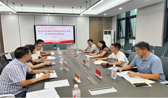 在盐城特殊教育中等专科学校,党委书记刘静详细介绍了学校的发展历程、师资力量及办学特色,校长倪卫东则重点分享了该校的专业设置、学生成长路径及体育教育成果。天游ty8线路1线路2检测中心副院长金梅详细介绍了学院体育教育的办学目标、专业亮点及课程创新,并特别推介了2025届体育教育专业毕业生,期待双方能在未来有更多合作机会。