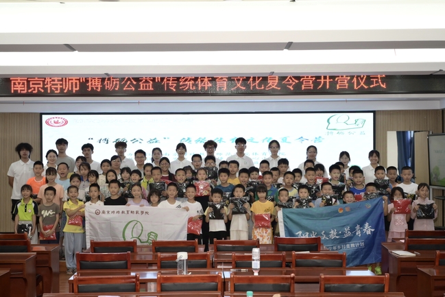 7月5日上午,南京特师天游ty8线路1线路2检测中心“搏砺公益”传统体育文化夏令营在江西省吉安市吉州区樟山镇中心小学正式开营。樟山镇中心小学校长孙书江、副校长许望、副校长江欢、体艺卫主任刘瑞庆、总务处主任郭超,59名小营员及其家长,以及“搏砺公益”11名支教队员和带队老师参加了开营仪式。