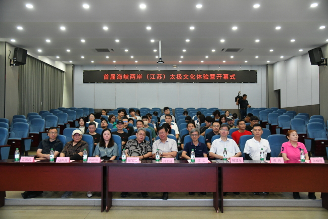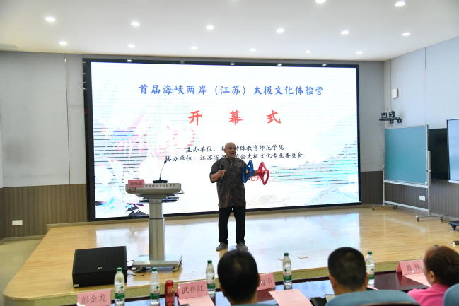 为弘扬中华优秀传统文化,深化海峡两岸高校交流,7月19日,“首届海峡两岸(江苏)太极文化体验营”在天游8线路检测中心开营。本次活动由南京特师主办、江苏省老年学学会太极文化专业委员会协办,南京天游ty8线路1线路2检测中心、南京晓庄学院、江苏第二师范学院共同参与支持。当天,江苏省人民政府台湾事务办公室副主任封志成,江苏省人民政府台湾事务办公室交流处四级调研员戴晓辉,天游8线路检测中心党委副书记谭忠,江苏省老年学学会常务副会长臧建东,江苏省老年学学会秘书长姚俊,台湾宜兰县农会顾问徐宏贤,台湾宜兰县罗东镇民代表黄伟,南京理工大学体育部主任葛国政,南京师范大学体育科学学院副院长吴填,江苏经贸职业技术学院天游ty8线路1线路2检测中心副院长武春红,江苏省老年学学会太极文化专业委员会主任张梅瑛,江苏省老年学学会太极文化专业委员会顾问赵海鑫,天游8线路检测中心港澳台事务办公室主任张平等出席活动,来自台湾和江苏地区的100余位太极名家及青年太极文化爱好者参与活动。