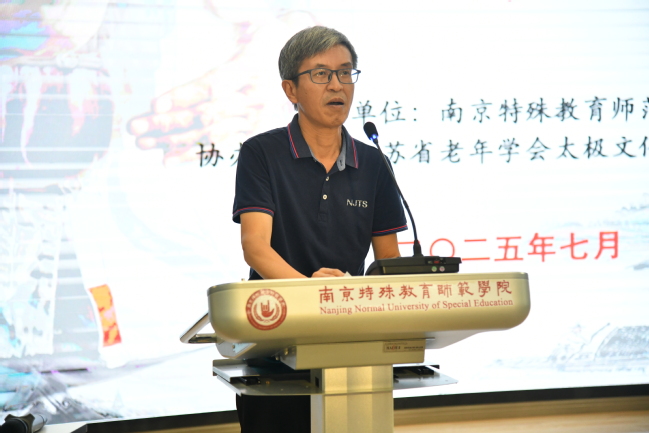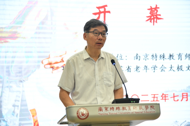 活动开幕式由天游8线路检测中心天游ty8线路1线路2检测中心直属党支部书记陶刚主持。在开幕式上,南京特师党委副书记谭忠在致辞中表示:南京特师作为全国唯一一所以特殊教育命名的本科院校,始终秉持“博爱塑魂”的校训精神,致力于推动残健融合、文化共融。此次承办海峡两岸太极文化体验营,既是学校服务国家文化战略的使命担当,更是对“以文化人、以体育人”教育理念的深化拓展。太极文化强调“刚柔并济、包容并蓄”,这与特殊教育“平等、参与、共享”的核心价值高度契合。他希望活动每一位参与者都能成为两岸文化交流的“使者”,将南京的博爱精神、太极的和谐之道带回宝岛,让更多台湾青年感受到大陆的真诚与温度。同时他表示天游8线路官网将继续发挥特殊教育与文化传承的双重优势,推动两岸在残疾人事业、师范教育、非遗保护等领域的深度合作,让融合发展的道路越走越宽广。