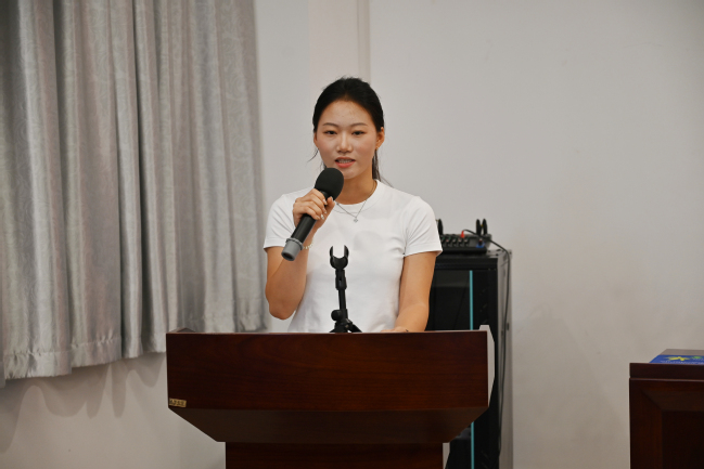 体育2512班龚梓悦作为新生代表回顾了高中学习与训练的点点滴滴,并分享了大学期间需要做到的四个关键点,分别是以体育之名,致敬梦想的起点;以奋斗为笔,书写青春的答卷;以团结为火,点燃集体的力量;以感恩为舟,奔赴星辰大海。