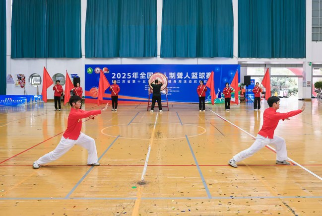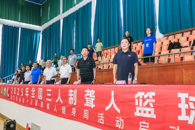 杜晓镇副理事长宣布2025年全国三人制聋人篮球赛暨江苏省第十五届残疾人健身周活动正式开幕。随着激昂的进行曲响起,现场掌声雷动,运动员们脸上洋溢着兴奋与期待,一场精彩的体育盛宴就此拉开帷幕。
