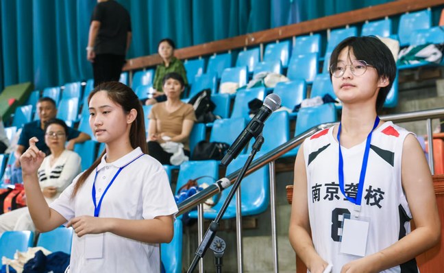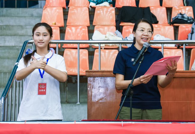 运动员代表纪佳怡、裁判员代表徐弘济先后上台宣誓。运动员代表承诺将严格遵守比赛规则,尊重对手、尊重裁判、尊重观众,以最佳的状态投入比赛,展现聋人运动员的风采;裁判员代表则保证将秉持公平、公正、公开的原则,认真履行裁判职责,确保比赛顺利进行。他们坚定的眼神与庄重的誓言,展现出对体育精神的坚守与对活动的高度负责。