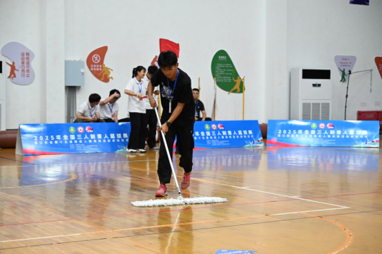 从挥旗示意的专注,到掐表计时的严谨,再到及时拖地的细心,志愿者们的身影活跃在赛场的每一个角落。他们没有站在聚光灯下,却构成了这片赛场最坚实的背景。