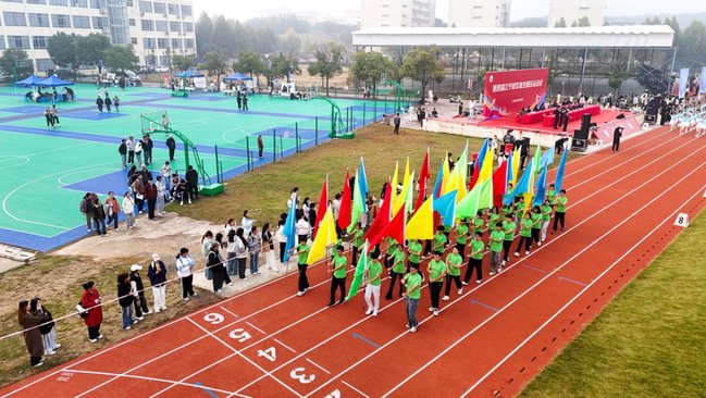 最后,校党委副书记谭忠宣布运动会开幕,话音落下,现场掌声、欢呼声此起彼伏。随后,各学院参赛选手带来了别开生面的广播体操表演,同学们动作协调统一、富有动感,整齐划一的队形与朝气蓬勃的精神状态,成为运动场上一道亮丽的风景线。