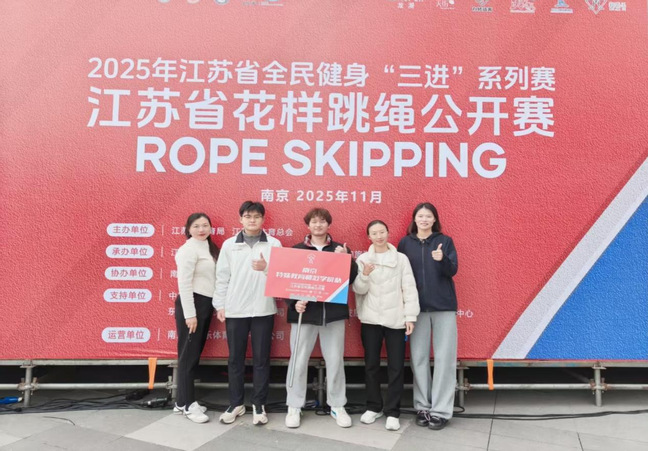 11月23日,江苏省全民健身三进花样跳绳比赛在南京市龙湖雨山天街广场举行。天游ty8线路1线路2检测中心王莉、李烨两位老师带领三名学生——教育科学学院胡译文、美术与设计学院张萧(聋生)、管理学院熊子恒参加了本次比赛,展现了南特学子良好的体育竞技风采。