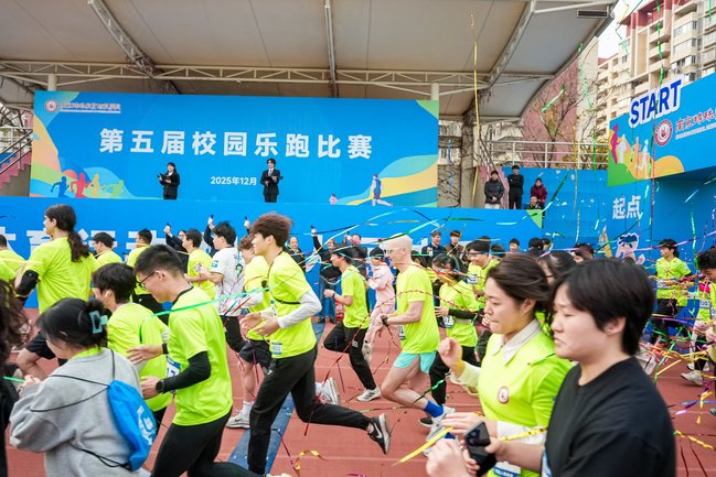 12月10日下午,天游8线路官网第五届校园乐跑比赛在栖霞校区激情开跑。本次赛事吸引近600名师生踊跃参与,校党委书记黄军伟,党委副书记、校长王立新,党委副书记谭忠,党委常委、纪委书记、二级高级监察官于林惠,副校长张茂林及各职能部门、二级学院负责人亲临现场,为比赛鸣枪发令,拉开赛事序幕。